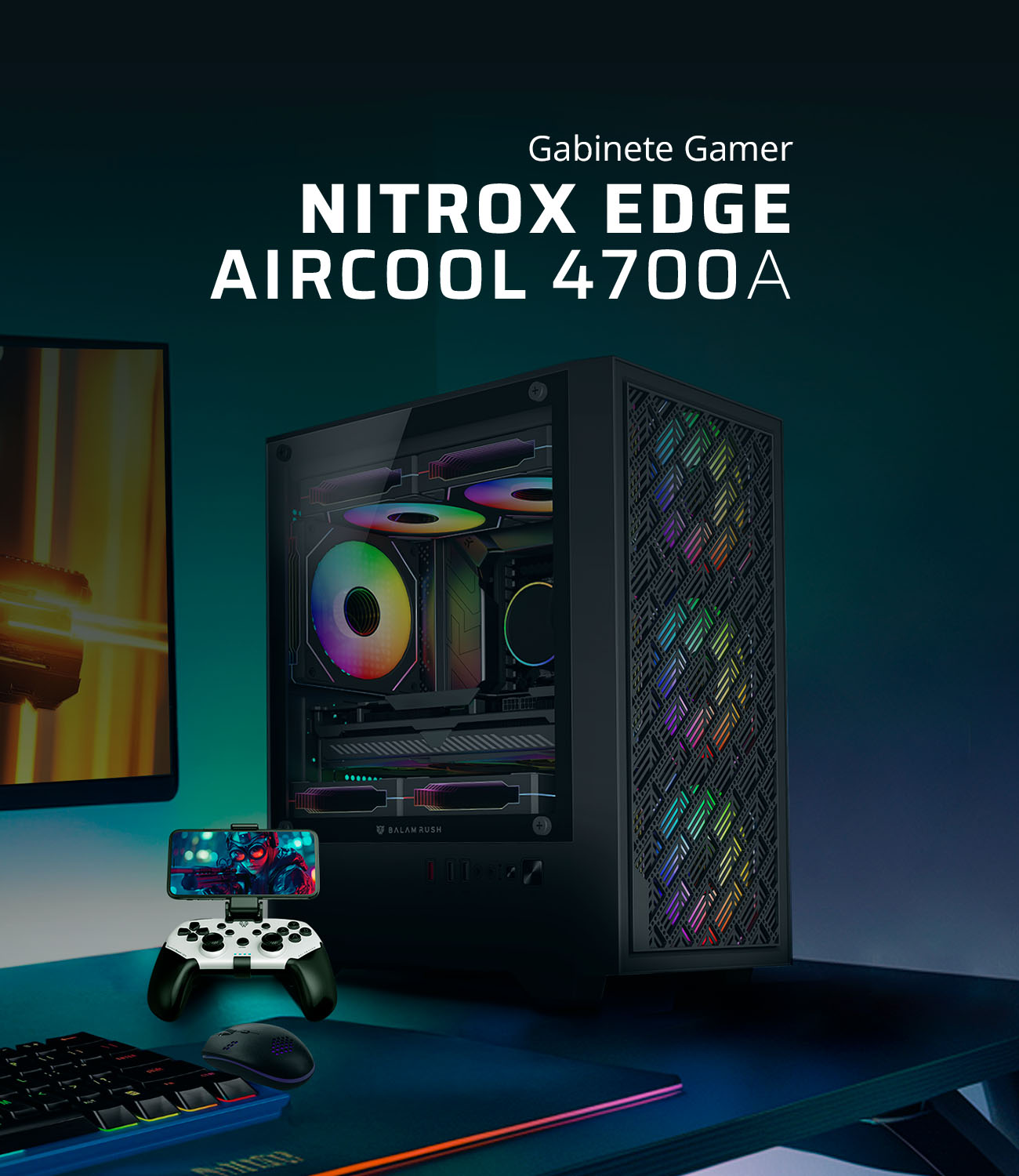 Gabinete Gamer Compact Mini Torre | Nitrox Edge Aircool 4700A | Negro