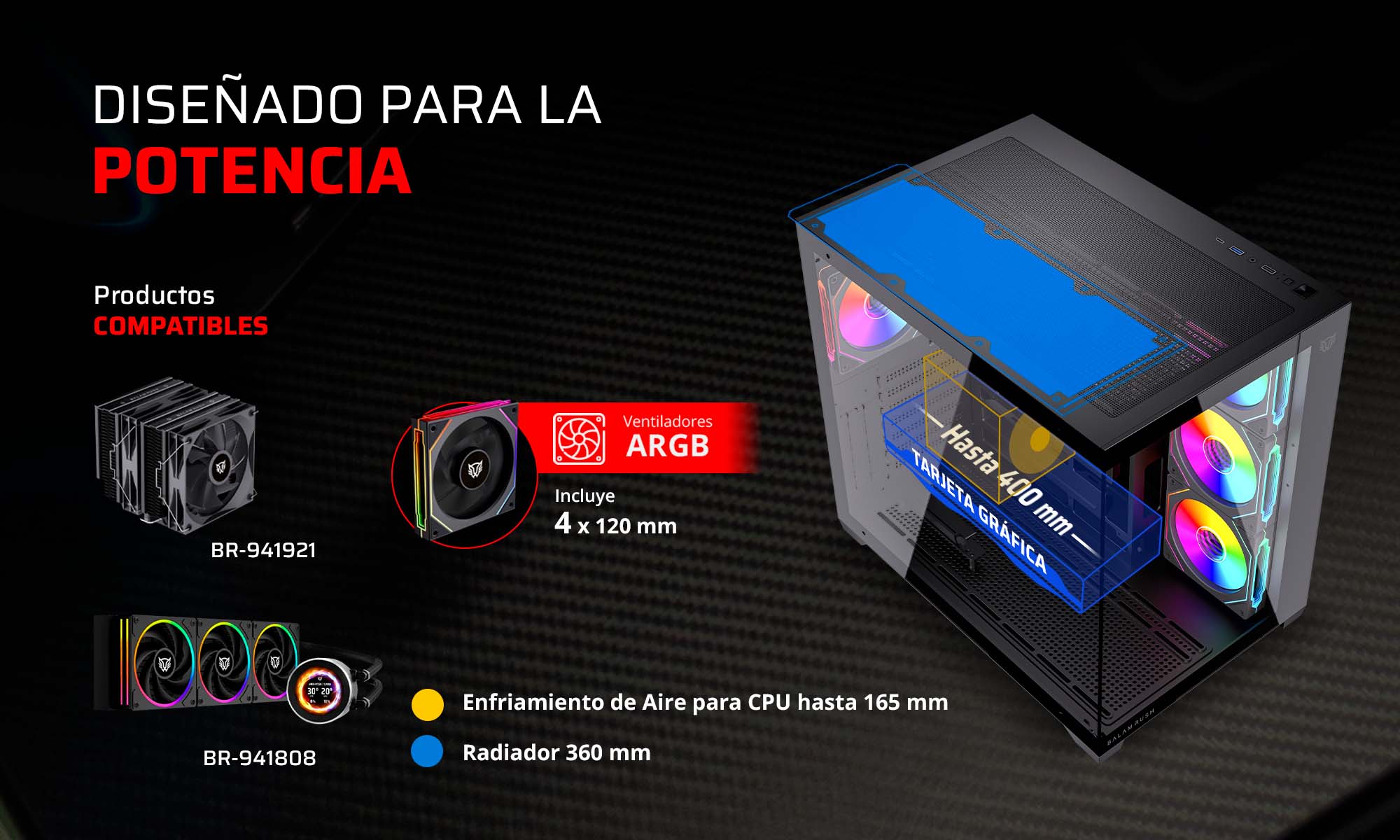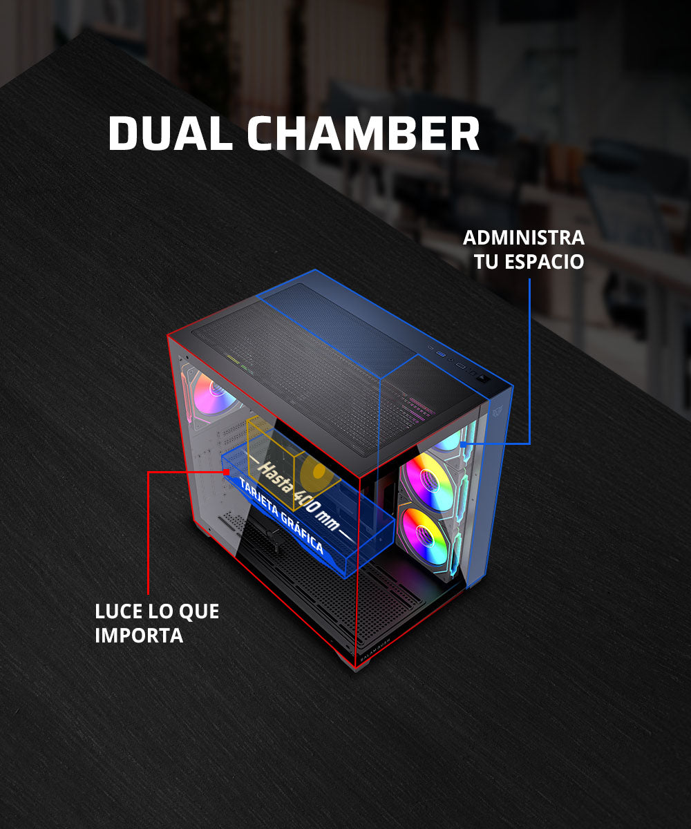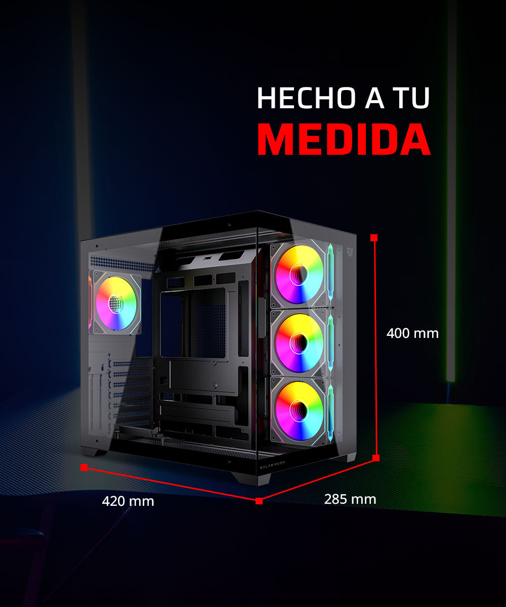Diseñado para destacar cada detalle de tu configuración, ideal para exhibir componentes RGB, sistemas de refrigeración personalizados y una organización impecable del hardware.