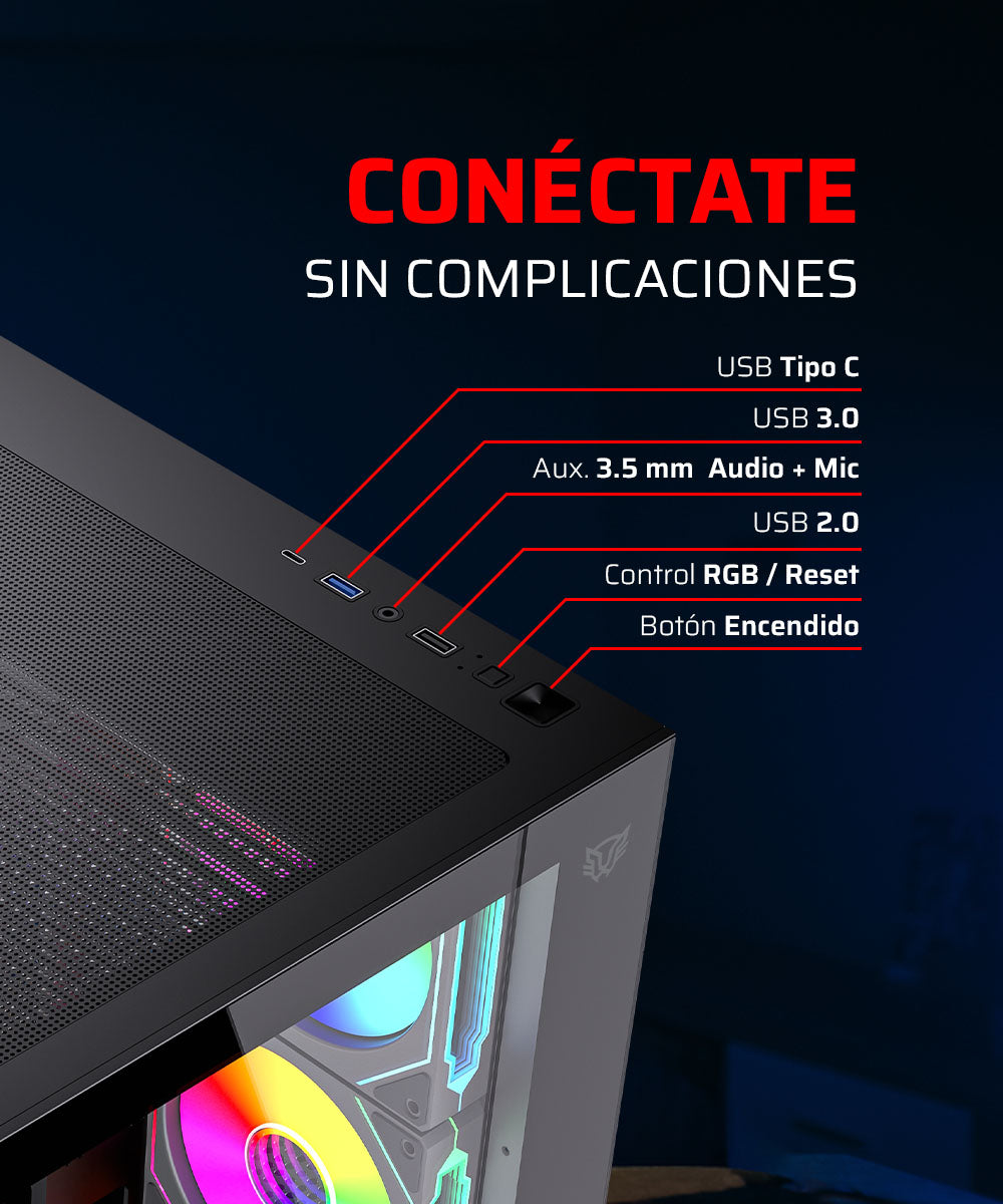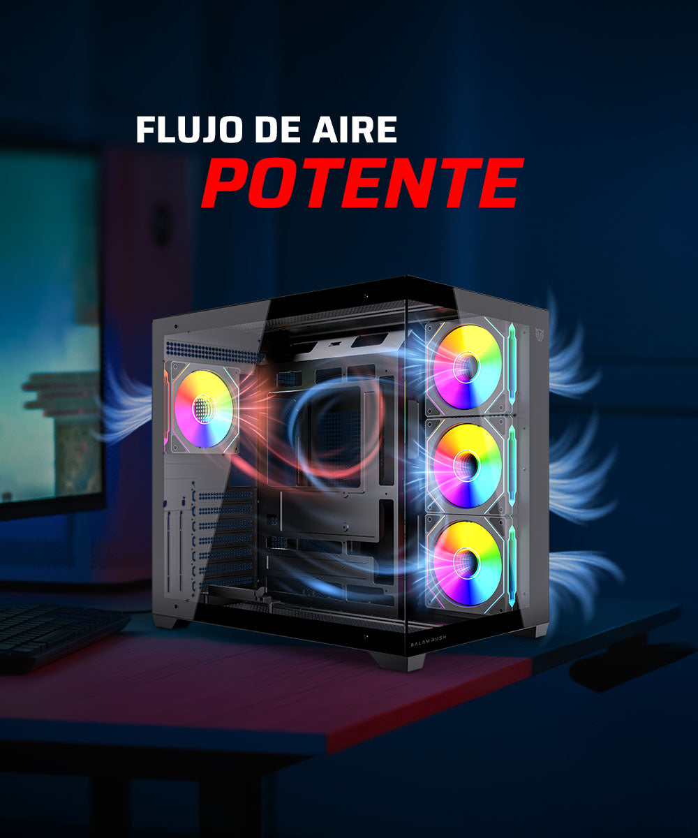 Compatible con motherboards Micro ATX y Mini ITX, ofrece la flexibilidad ideal para construir configuraciones gaming potentes, compactas y eficientes, manteniendo alto desempeño en cada partida y estilo visual moderno