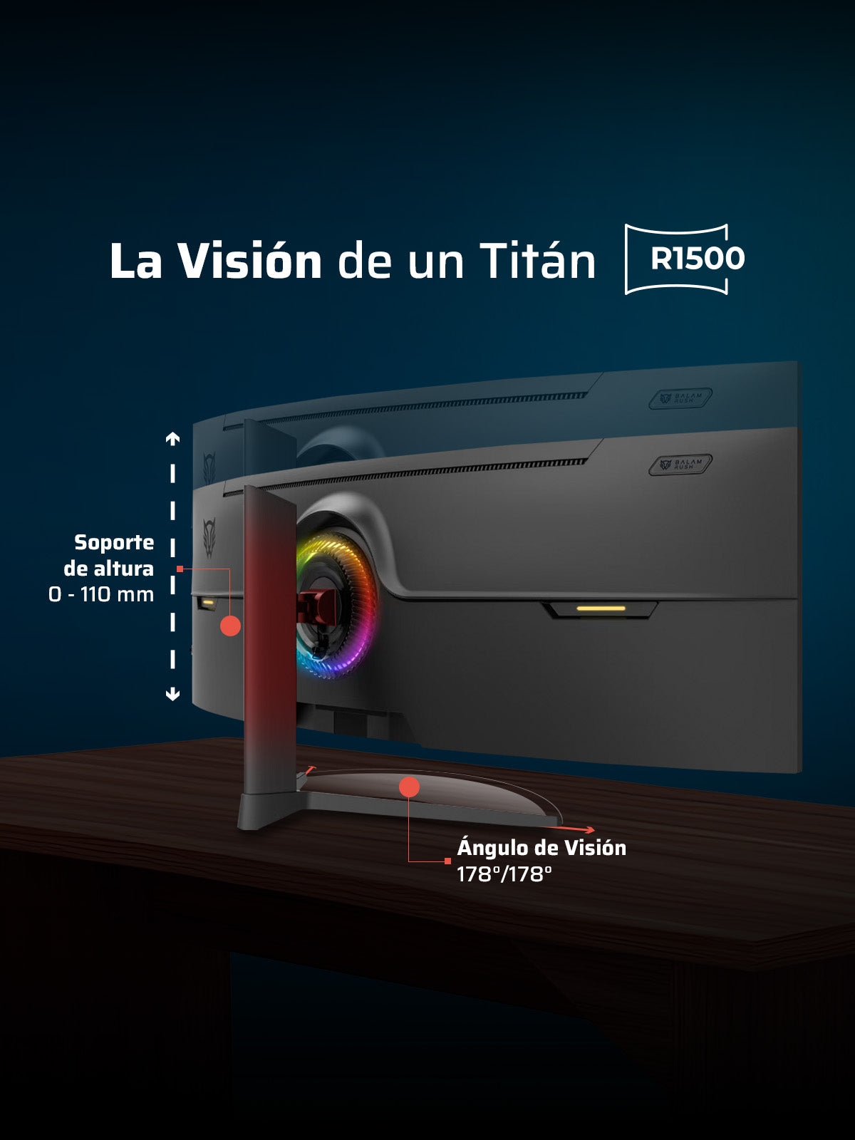 Con soporte ajustable de 0 a 11 cm, posiciona tu pantalla al nivel perfecto y disfruta comodidad total y precisión absoluta en cada sesión gamer.