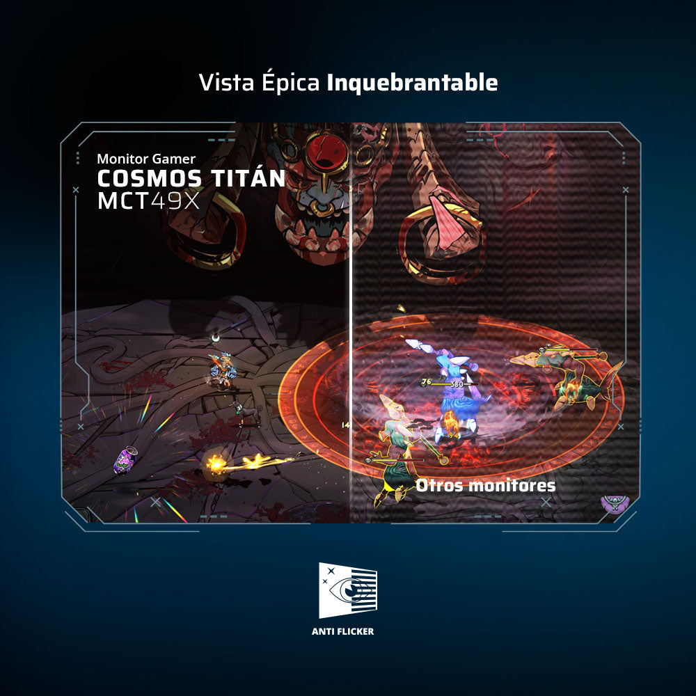 Elimina parpadeos, reduce fatiga visual y ofrece una experiencia estable y nítida ideal para sesiones de juego intensas.