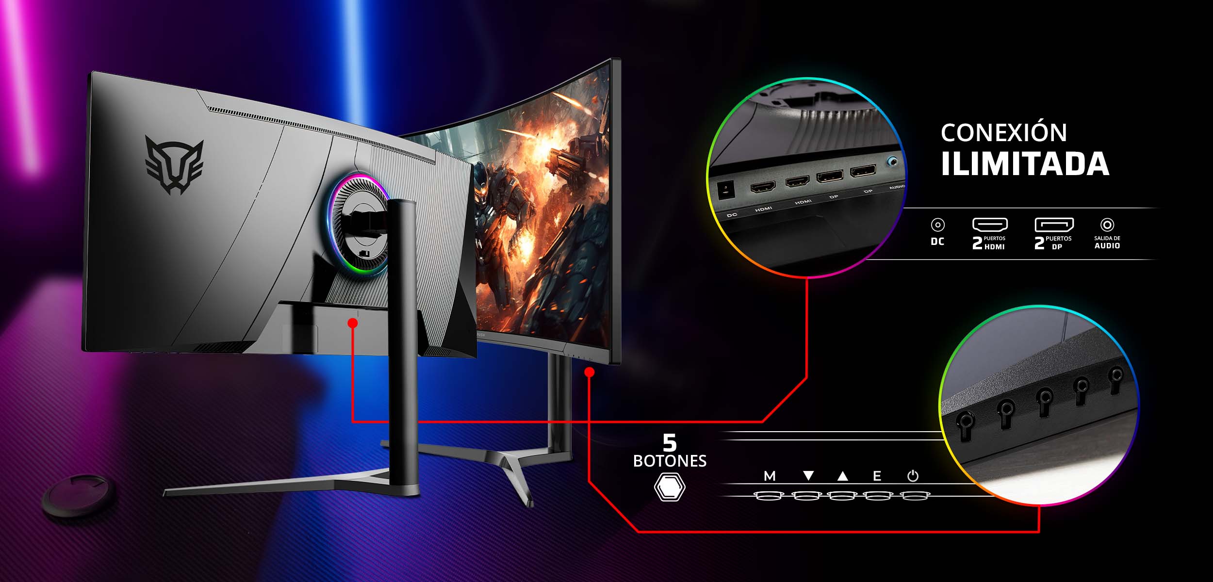 Equipado con 5 botones de fácil acceso, este monitor te permite ajustar configuraciones de imagen y audio rápidamente, mejorando tu experiencia de usuario en cada partida.